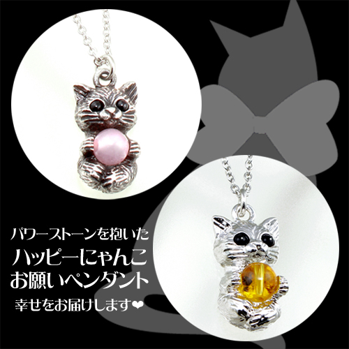大人らしいシックな色合いでアンティーク感のある古美仕上の小猫がローズクォーツを抱えたタイプと明るく美しい輝きを放つロジウム仕上の小猫がシトリン(黄水晶)を抱えたタイプの2種類をご用意。