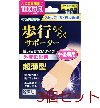 足指小町 歩行らくらくサポーター 縫い目がないタイプ フリー 1枚入 3セット 送料無料