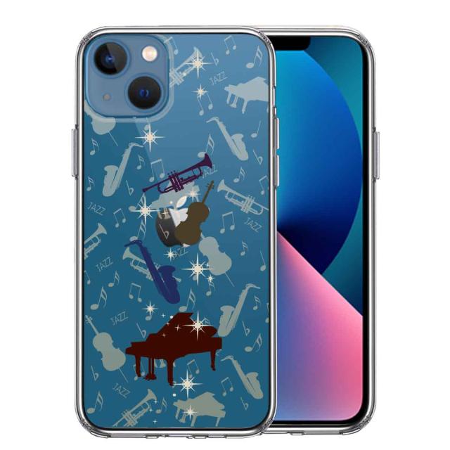 iPhone13 ケース クリアJAZZ 2 楽器 音符 スマホケース 側面ソフト 背面ハード ハイブリッド