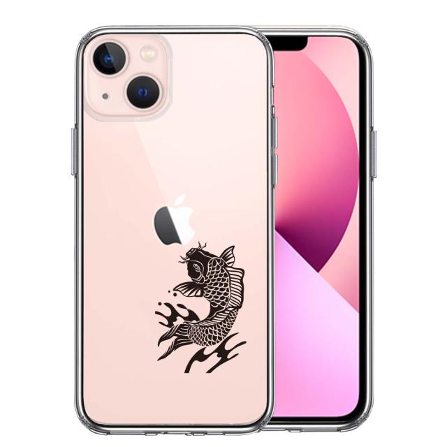 iPhone13 ケース クリア黒鯉 スマホケース 側面ソフ