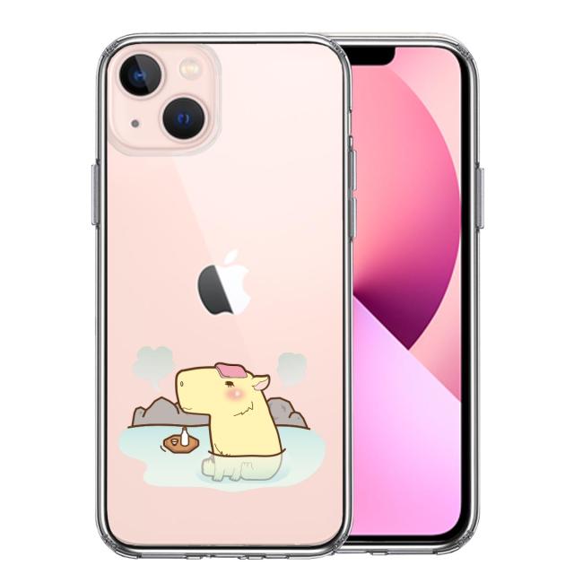 iPhone13mini ケース クリア カピバラ 温泉 スマホケース 側面ソフト 背面ハード ハイブリッド