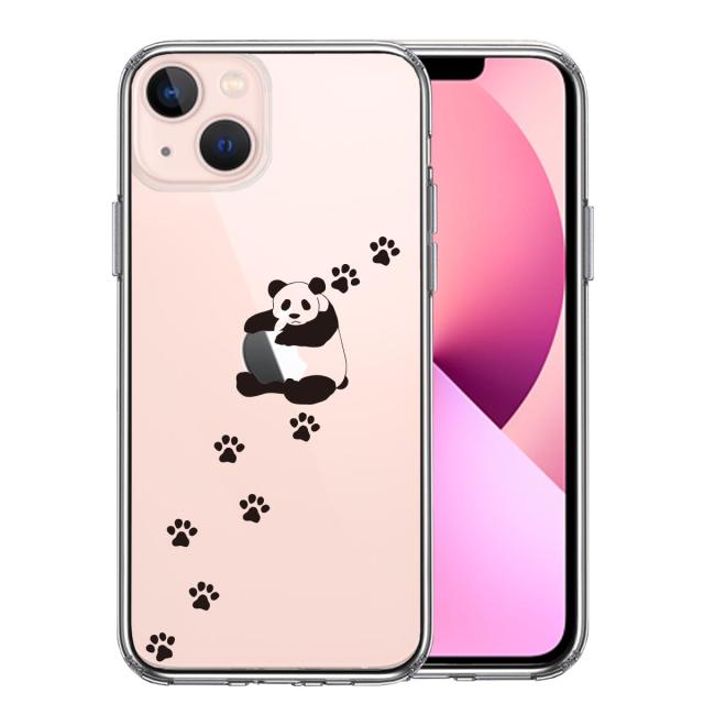 iPhone13mini ケース クリアパンダ リンゴ大好き スマホケース 側面ソフト 背面ハード ハイブリッド
