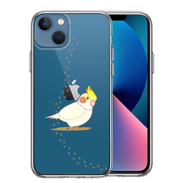 iPhone14Plus ケース クリアインコ 足跡 スマホケース 側面ソフト 背面ハード ハイブリッド