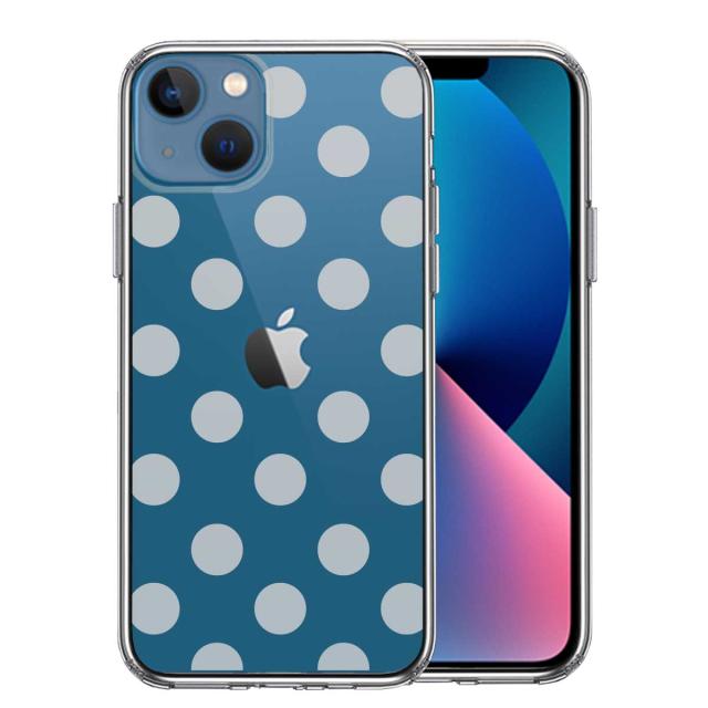 iPhone13 ケース クリア水玉 ブルーグレー スマホケース 側面ソフト 背面ハード ハイブリッド