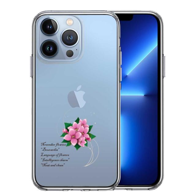 iPhone13Pro ケース クリア一輪花 11月 ブバルディア スマホケース 側面ソフト 背面ハード ハイブリッド 送料無料