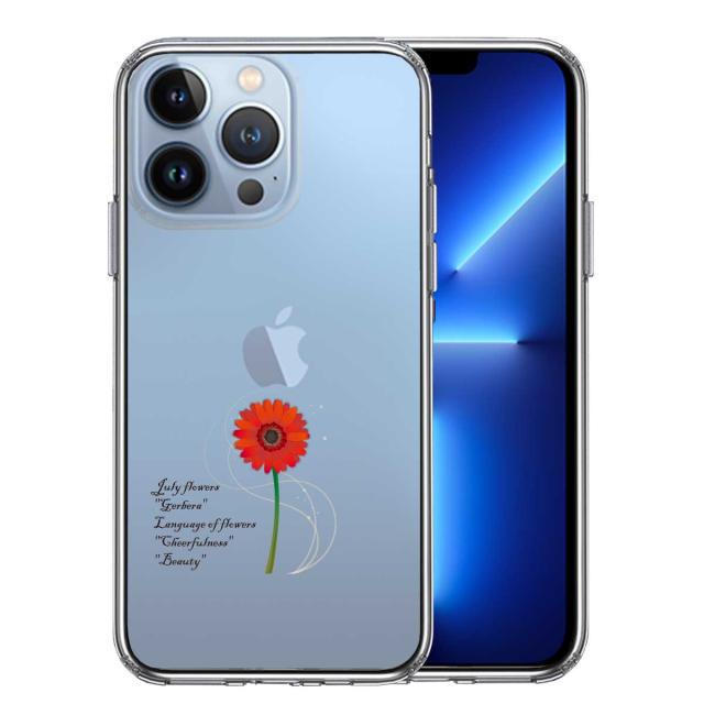 iPhone13Pro ケース クリア一輪花 7月 ガーベラ スマホケース 側面ソフト 背面ハード ハイブリッド 送料無料