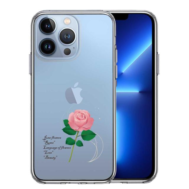 iPhone13Pro ケース クリア一輪花 6月 薔薇 バラ スマホケース 側面ソフト 背面ハード ハイブリッド 送料無料
