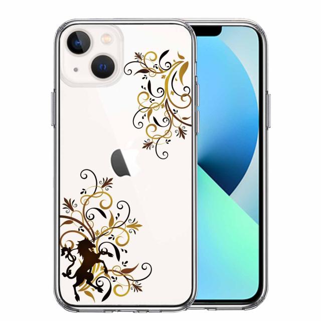 iPhone13 ケース クリアフローラル ユニコーン ブラウン スマホケース 側面ソフト 背面ハード ハイブリッド