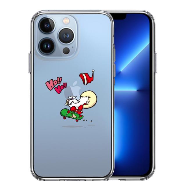iPhone13Pro ケース クリアトナカイ スケートボード サンタ スマホケース 側面ソフト 背面ハード ハイブリッド 送料無料