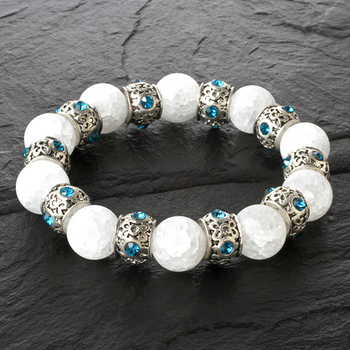 爆裂白水晶10個(12mm珠 フロスト加工)、ロンデル10個(11×8mm 真鍮/ラインストーン)