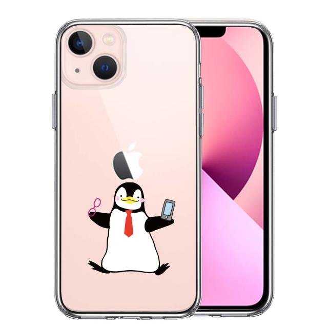 iPhone13mini ケース クリアペンギン 眼鏡とスマホ スマホケース 側面ソフト 背面ハード ハイブリッド 送料無料