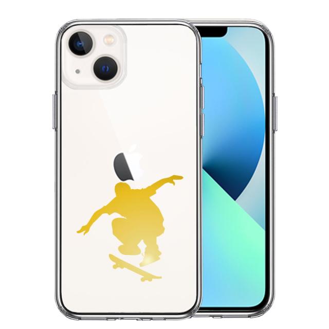 iPhone13mini ケース クリアスケートボード イエロー スマホケース 側面ソフト 背面ハード ハイブリッド 送料無料