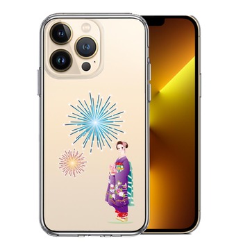 iPhone13Pro ケース クリア 花火と着物女性 スマ