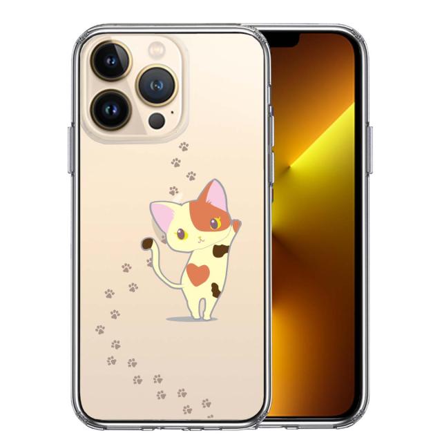 iPhone13Pro ケース クリアジャケット 三毛猫 フットプリント スマホケース 側面ソフト 背面ハード ハイブリッド 送料無料