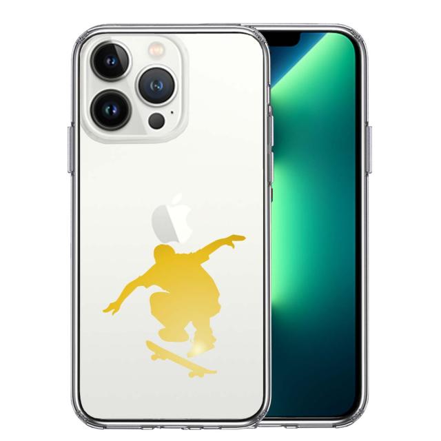 iPhone13Pro ケース クリアスケートボード イエロー スマホケース 側面ソフト 背面ハード ハイブリッド 送料無料