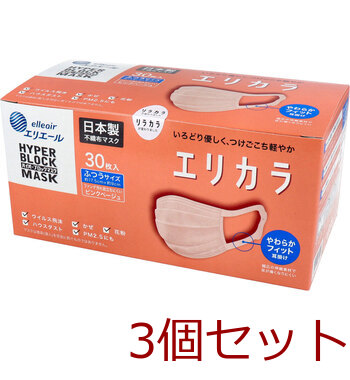 マスク エリエール ハイパーブロックマスク エリカラ ピンクベージュ ふつうサイズ 30枚入 3セット 送料無料