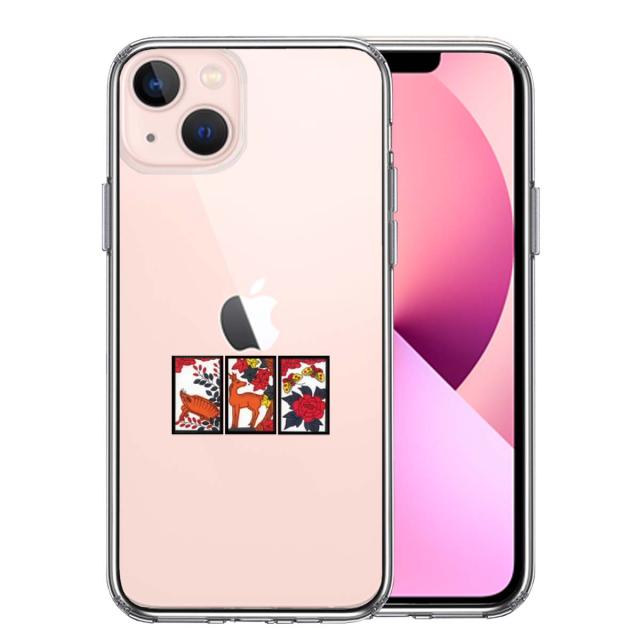 iPhone13mini ケース クリア花札 猪鹿蝶 スマホケース 側面ソフト 背面ハード ハイブリッド 送料無料