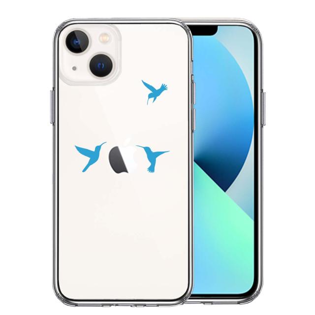 iPhone13mini ケース クリアハチドリ ブルー スマホケース 側面ソフト 背面ハード ハイブリッド