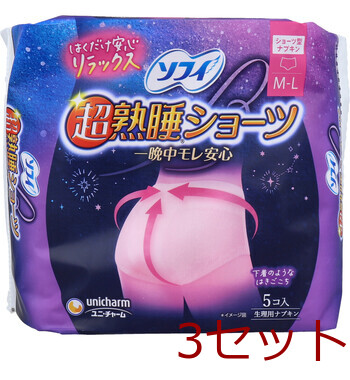 ソフィ 超熟睡ショーツ ショーツ型ナプキン 特に多い夜用 M-Lサイズ 5個入 3セット 送料無料