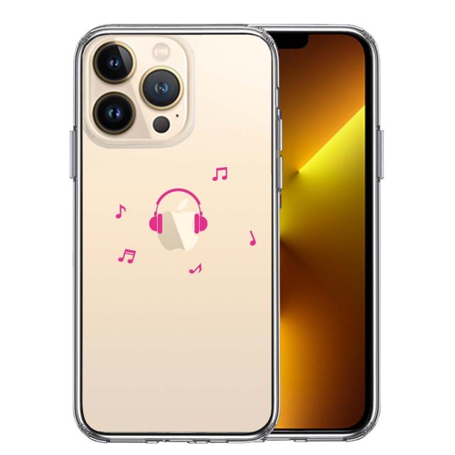 iPhone13Pro ケース クリアヘッドフォン ヘッドホン ピンク スマホケース 側面ソフト 背面ハード ハイブリッド 送料無料