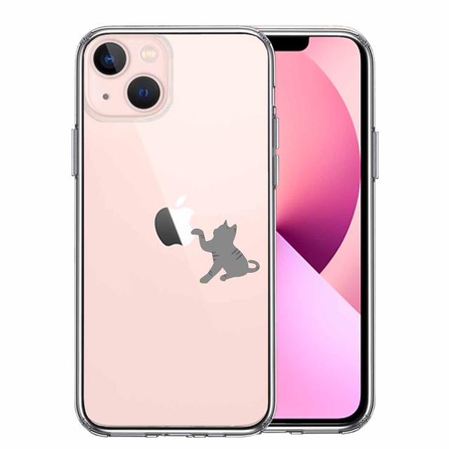 iPhone13mini ケース クリアにゃんこ ねこ 猫 どら猫 リンゴきになる スマホケース 側面ソフト 背面ハード ハイブリッド