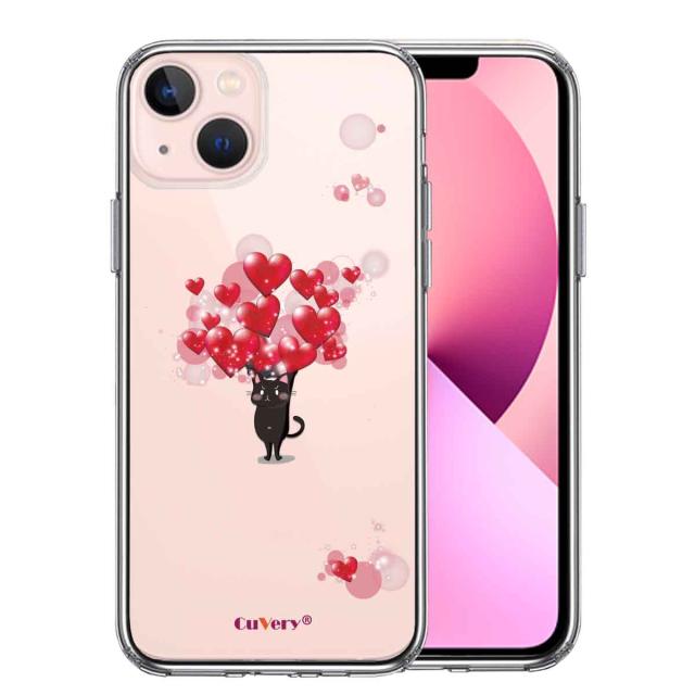 iPhone13mini ケース クリア猫 ネコ にゃんこ ハート 黒猫 2 スマホケース 側面ソフト 背面ハード ハイブリッド