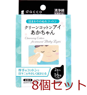 クリーンコットンアイ あかちゃん 目のまわりのぬれコットン 2枚入×16包入 8セット 送料無料