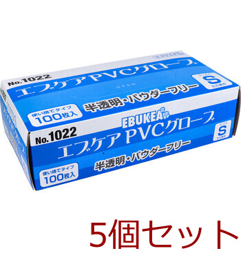 業務用No.1022 エブケアPVCグローブ 半透明 パウダーフリー 使捨手袋 S 100枚 5個セット 送料無料