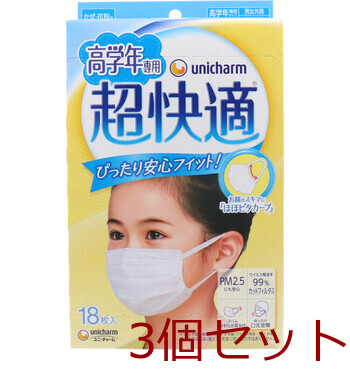 マスク 超快適マスク かぜ 花粉用 高学年専用タイプ 18枚入 3セット 送料無料