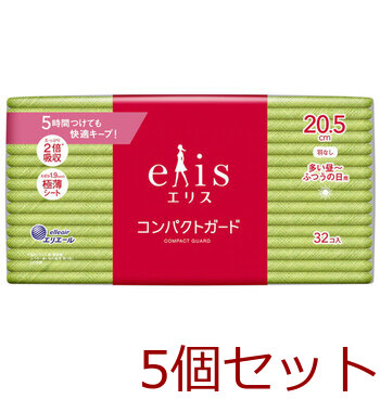 エリス コンパクトガード 多い昼-ふつうの日用 羽なし 20.5cm 32コ入 5セット 送料無料