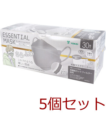 マスク 不織布 さらふわ ESSENTIAL MASK 不織布マスク ライトグレー FD30-GR 紙製マスクケース付き 30枚入 5セット 送料無料