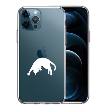 iPhone12Pro ケース クリア ねこ 猫 リンゴで伸び スマホケース 側面ソフト 背面ハード ハイブリッド 送料無料