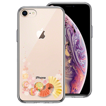 iPhone8 ケース クリア 和柄 扇 毬 花柄 スマホケース 側面ソフト 背面ハード ハイブリッド 送料無料