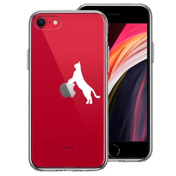 iPhoneSE ケース 第3世代 第2世代 クリア ねこ 猫 リンゴで伸び 白 スマホケース 側面ソフト 背面ハード UA17430682-5307 送料無料