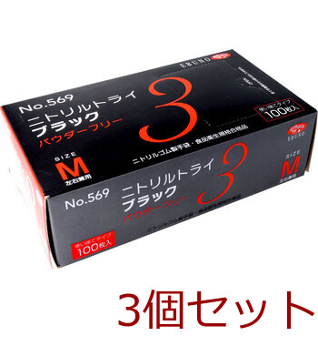業務用No.569ニトリルトライ3ブラック ニトリルゴム使捨手袋 M 100枚 3個セット 送料無料