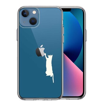 iPhone13mini ケース クリアにゃんこ リンゴ つんつん ホワイト スマホケース 側面ソフト 背面ハード ハイブリッド 送料無料