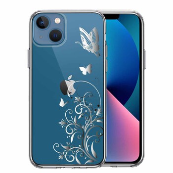 iPhone13 ケース クリアフローラル & バタフライ グレー スマホケース 側面ソフト 背面ハード ハイブリッド 送料無料