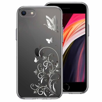 iPhoneSE ケース 第3世代 第2世代 クリア フローラル バタフライ グレー スマホケース 側面ソフト 背面ハード ハイブリッド 送料無料