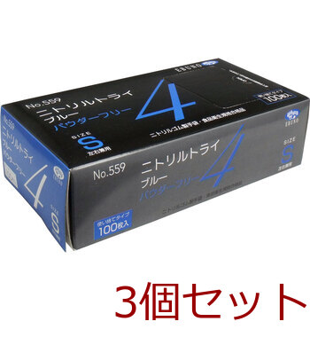 業務用No.559 ニトリルトライ4 ブルー パウダーフリー ニトリルゴム製 使い捨て手袋 Sサイズ 100枚入 3セット 送料無料
