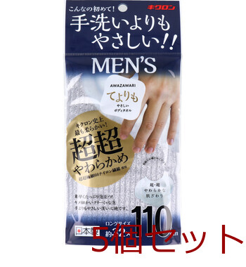 キクロン あわざわり てよりもやさしいボディタオル メンズ シルバーグレー 1枚入 5セット 送料無料