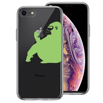 iPhone8 ケース クリア ゴリラ ライトグリーン 薄緑 スマホケース 側面ソフト 背面ハード ハイブリッド 送料無料