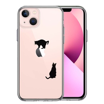 iPhone13mini ケース クリア猫 りんご制覇 いいな スマホケース 側面ソフト 背面ハード ハイブリッド