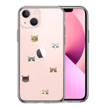 iPhone13mini ケース クリアにゃんこ 猫だらけ スマホケース 側面ソフト 背面ハード ハイブリッド