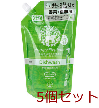 ハッピーエレファント 野菜 食器用洗剤 グレープフルーツ 詰替用2回分 500mL 5個セット 送料無料