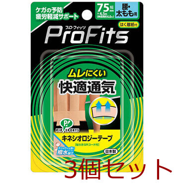 プロ フィッツ キネシオロジーテープ 快適通気 腰 太もも用 75mm×4.5m 1巻入 3セット 送料無料