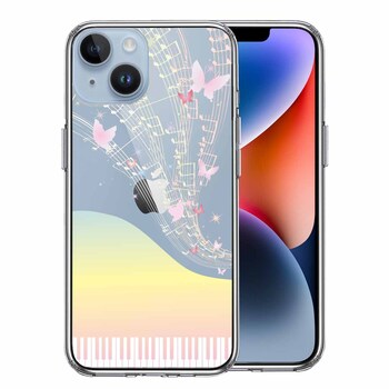 iPhone14Plus ケース クリア虹色 ピアノ スマホケース 側面ソフト 背面ハード ハイブリッド