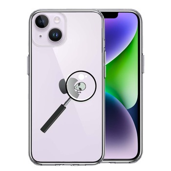 iPhone14 ケース クリア 宇宙人 りんごの後ろに ス