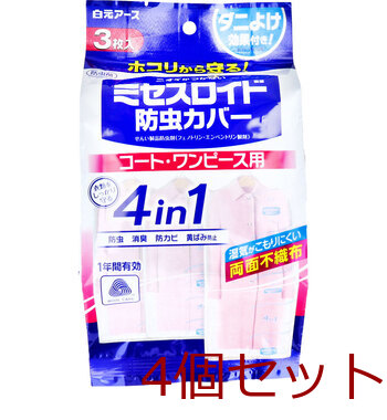 ワンピース ミセスロイド 防虫カバー コート ワンピース用 1年有効 3枚入 4セット 送料無料