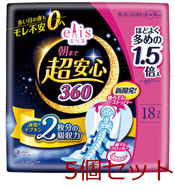 エリス 朝まで超安心 特に多い日の夜用 羽つき 36cm 18コ入 5セット 送料無料