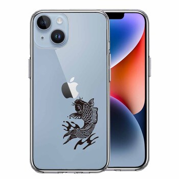 iPhone14 ケース クリア 黒鯉 スマホケース 側面ソ